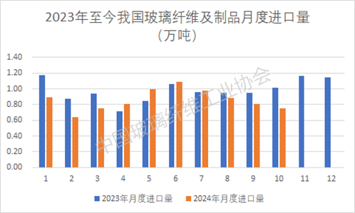 图3 2023年以来我国玻璃纤维及制品各月进口量变化情况