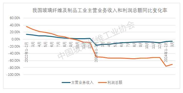 一季度,规模以上玻璃纤维及制品工业主营业务收入同比下降5.4%,降幅与去年全年相比明显收窄。但行业利润总额比去年同期下降71.12%,反映出行业整体利润水平已经处于严重偏低状态。