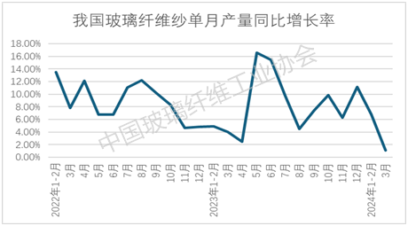 图1 我国玻璃纤维纱单月产量同比增速变化情况