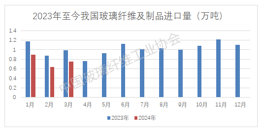2024年一季度,我国玻璃纤维及制品进口量为2.28万吨,同比下降23.25%;进口金额1.80亿美元,同比上升11.53%。随着前期国内玻纤产品价格的持续下滑,我国玻纤及制品进口规模大幅收窄,但部分高端玻纤制品市场仍依赖于进口。