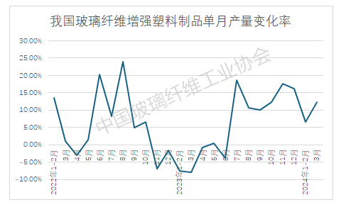 图2 我国玻璃纤维增强复合材料制品单月产量同比增速变化情况