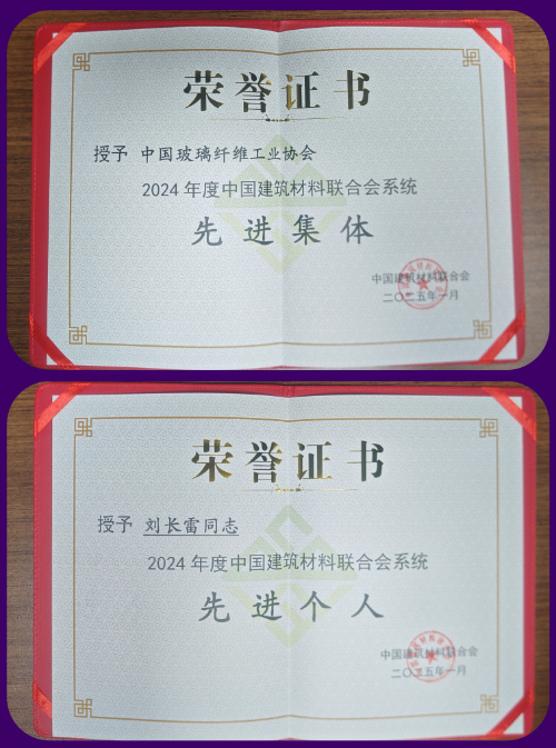 中国玻璃纤维工业协会荣获中国建材联合会系统2024年度先进集体称号,刘长雷同志获评先进个人